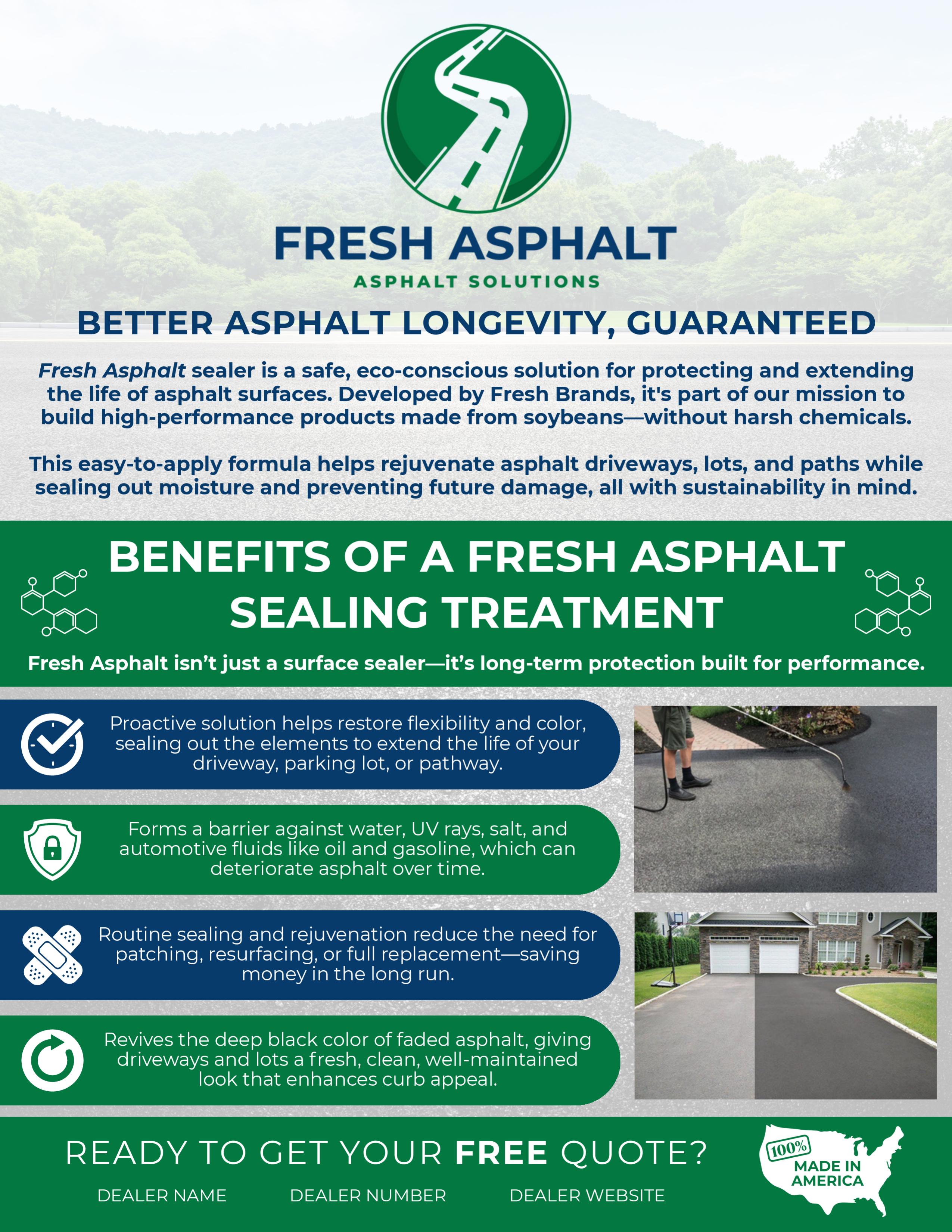 Fresh Asphalt™ is made from soybeans — not petroleum. That makes it ideal for clients who care about sustainability, including cities, parks, HOAs, and environmentally conscious homeowners. It applies cleanly, dries fast, and delivers visible results within days.